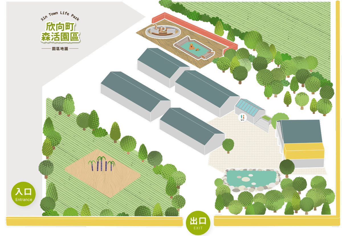 象徵欣向町精神的地景廣場,串連園區主題區域。無論是拍照打卡、集合報到,還是活動揭幕,這裡都是旅程的起點。